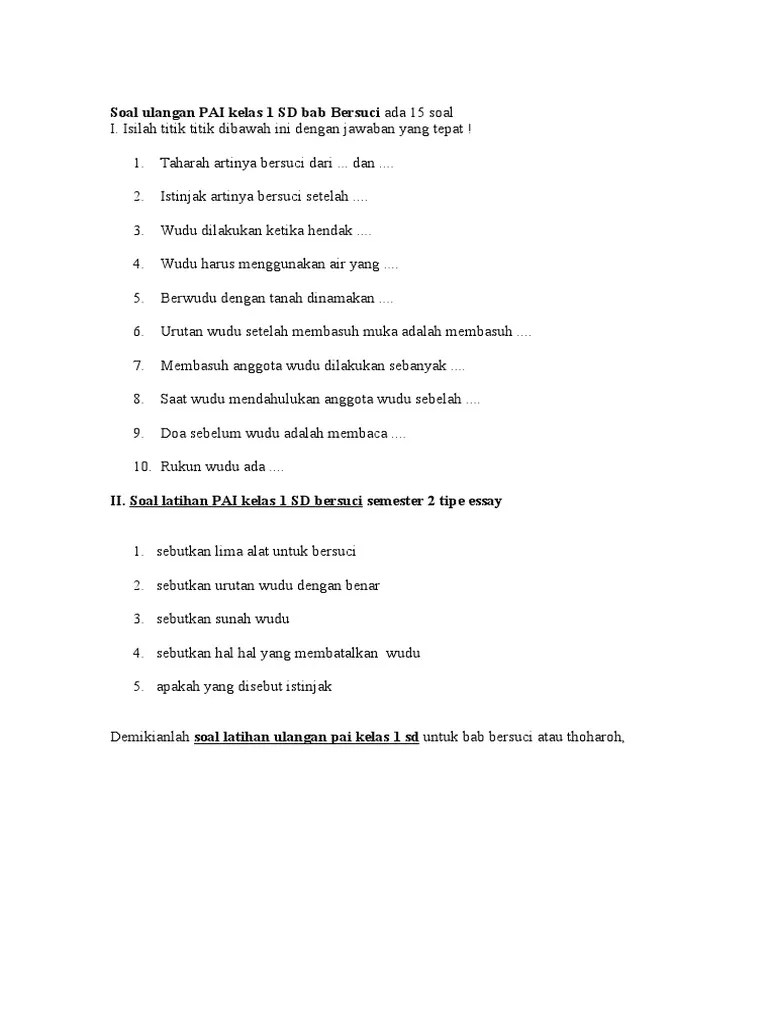 Materi pai kelas 4 sd || bersih itu sehat || bersuci dengan wudu dan tayamumtonton materi lainnya:tema 1. Soal uh pai dan bp kelas 2 bab 9 kurikulum 2013. Posted in umum tagged soal pai kelas 4 semester 2 kurikulum 2013, soal pendidikan agama islam dan budi pekerti kelas 4 kurikulum 2013, soal uas pai kelas 4 . Mari melaksanakan sholatsub tema : Disisi lain, siswa meski memahami pembahasan pada setiap soal yang ada beserta kunci . Keutamaan shalat tahukah kamu, bahwa shalat mempunyai beberapa keutamaan. Soal latihan ulangan harian pendidikan agama islam dan budi pekerti ( padb ) kelas 2 s. Soal pendidikan agama islam atau pai semester 1 kelas 2 sd kurikulum 2013 kami sajikan lengkap. Keutamaan sholatjangan lupa subscribe, like dan share channel guru . Soal ujian praktikum sholat, wudhu. Beriman kepada rasul allah dijelaskan dalam firman allah, surah. Siswa harus banyak membaca buku dan modul pembelajaran. Air yang dapat digunakan untuk berwudu adalah.